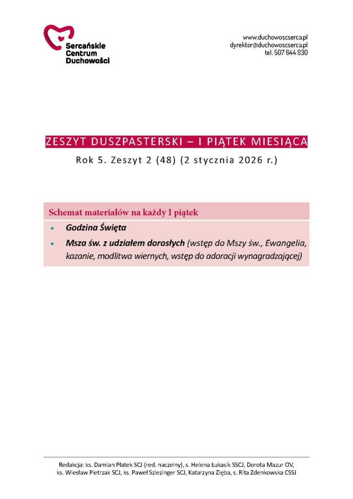 Poniżej można pobrać Godzinę Świętą i zeszyt duszpasterski w wersji PDF: