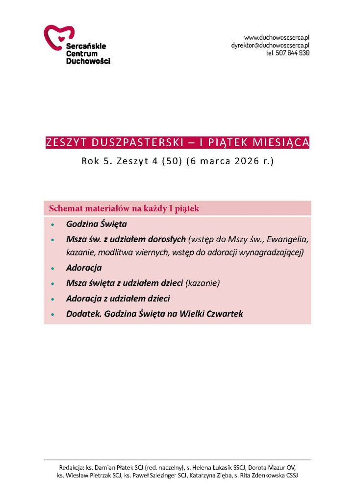Poniżej można pobrać Godzinę Świętą i zeszyt duszpasterski w wersji PDF: